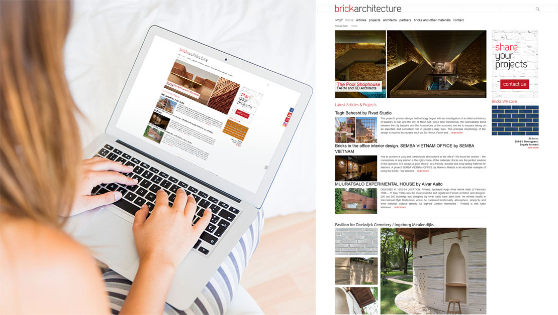 Brickarchitecture to anglojęzyczna strona dla miłośników cegły, skupiająca najbardziej niezwykłe i zachwycające dzieła architektury ceglanej z całego świata. By zrównoważyć bogate i skomplikowane projekty budownicze, stworzyliśmy prostą, inspirowaną geometrią identyfikację wizualną marki, a razem z nią szereg materiałów reklamowych, jak również samą w sobie stronę.